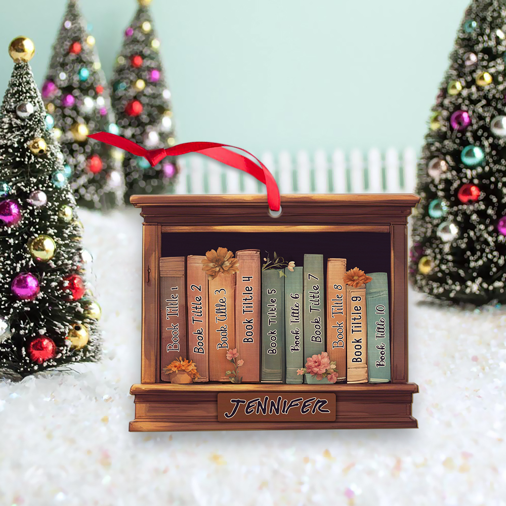 MeMate Personalized Book Ornament, Custom Name and Books Title, Booklovers Ornament, Wooden 2 Layers Book Christmas Ornaments Keepsake Decoration for Book Club Family Friends (02)